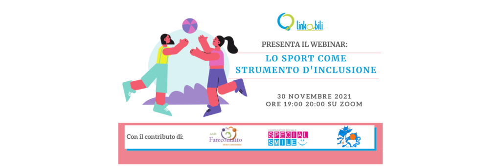 In occasione della Giornata Mondiale dei Diritti delle Persone con Disabilità, LinkAbili ha organizzato il webinar ” Lo sport come strumento d’inclusione “, martedì 30 Novembre alle 19:00 su Zoom.